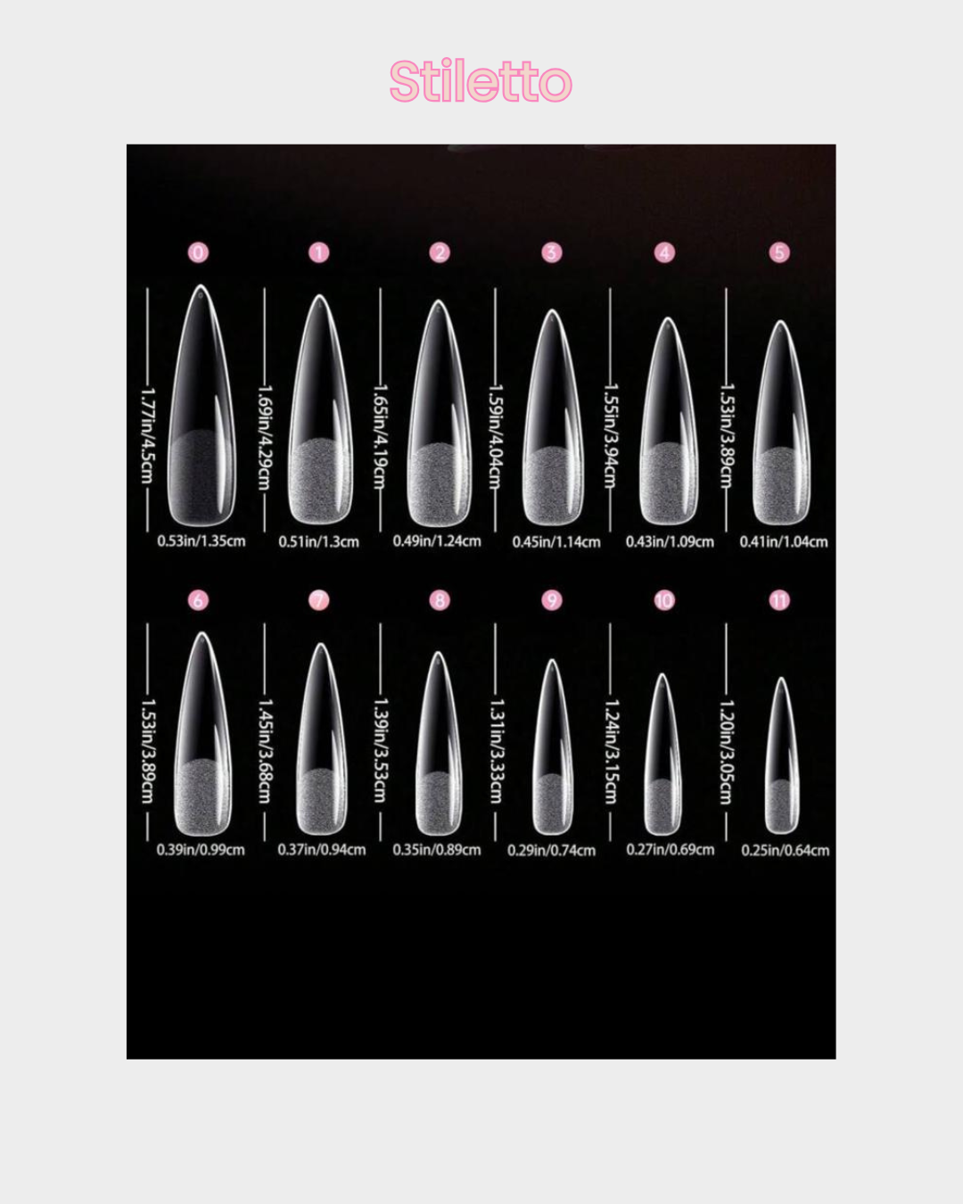 with a squared tip. - Stiletto – Long, sharp, and dramatic