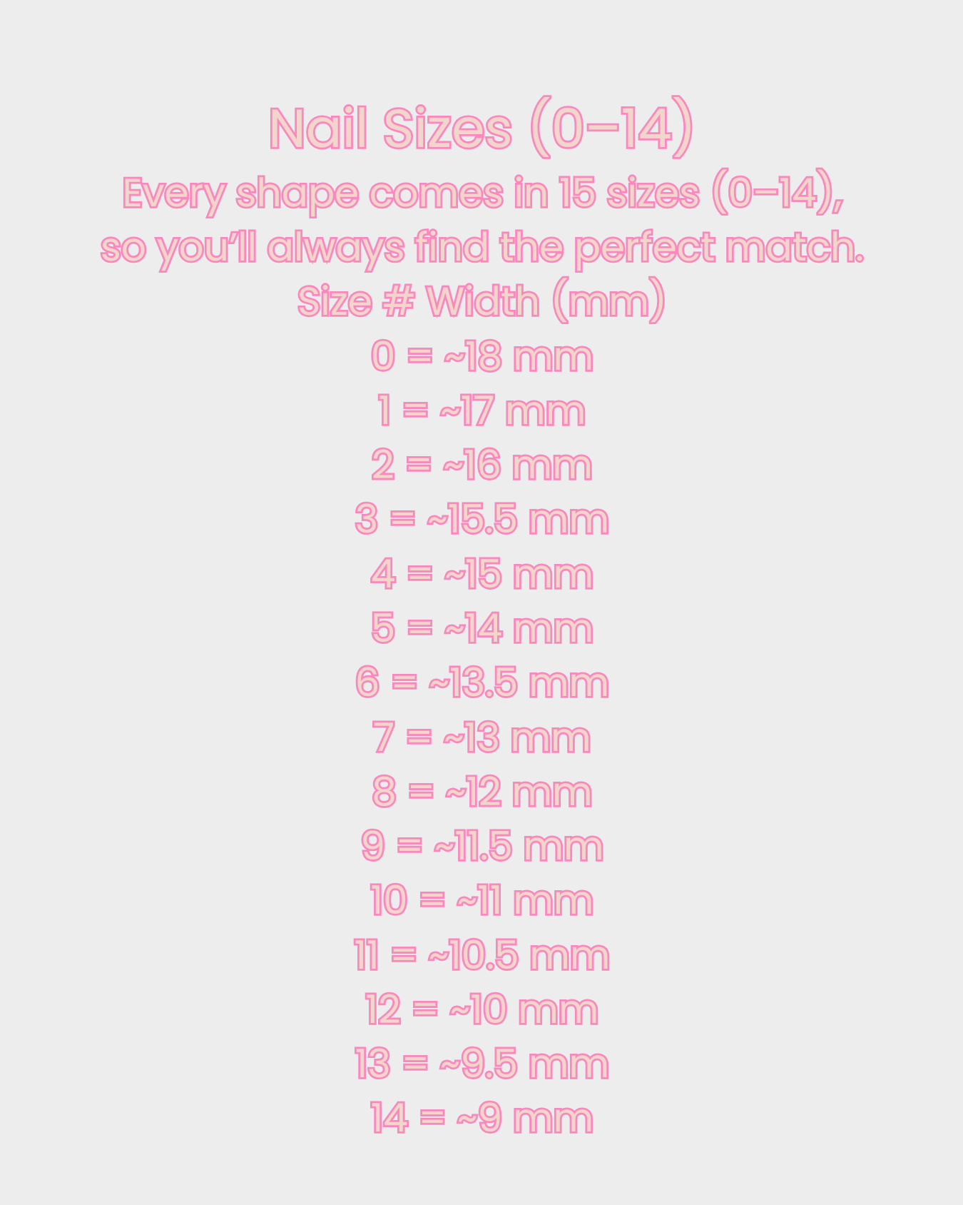 - Use our chart above to measure your nails in mm and send us your sizes at checkout.