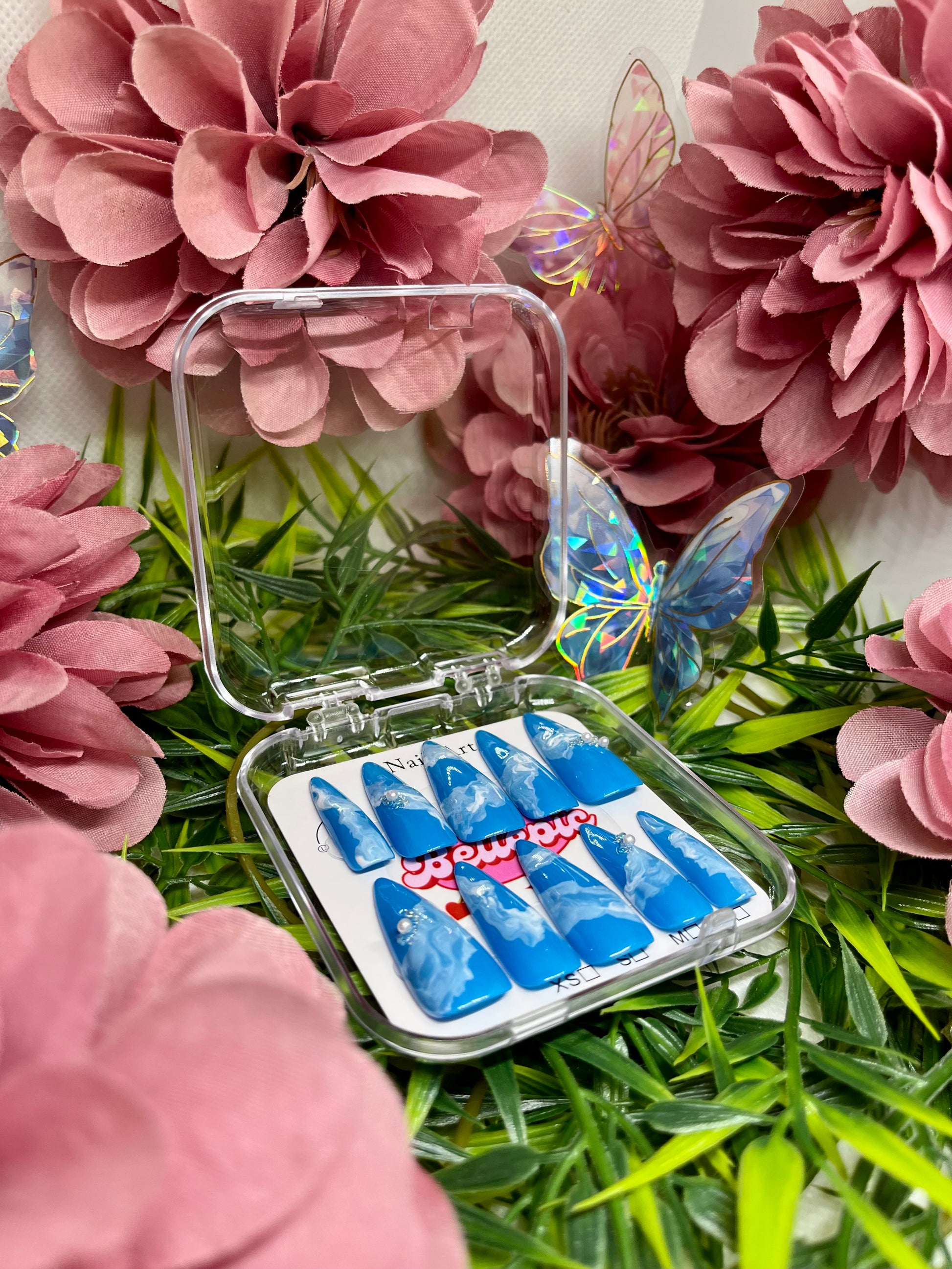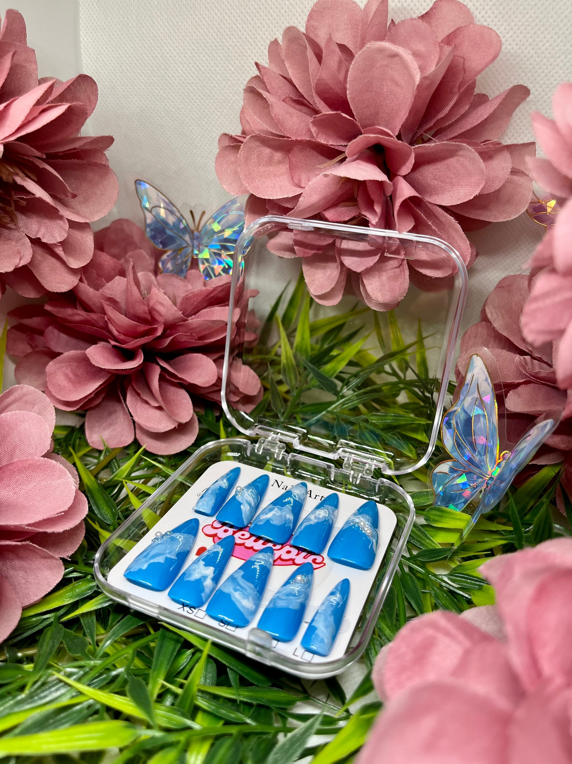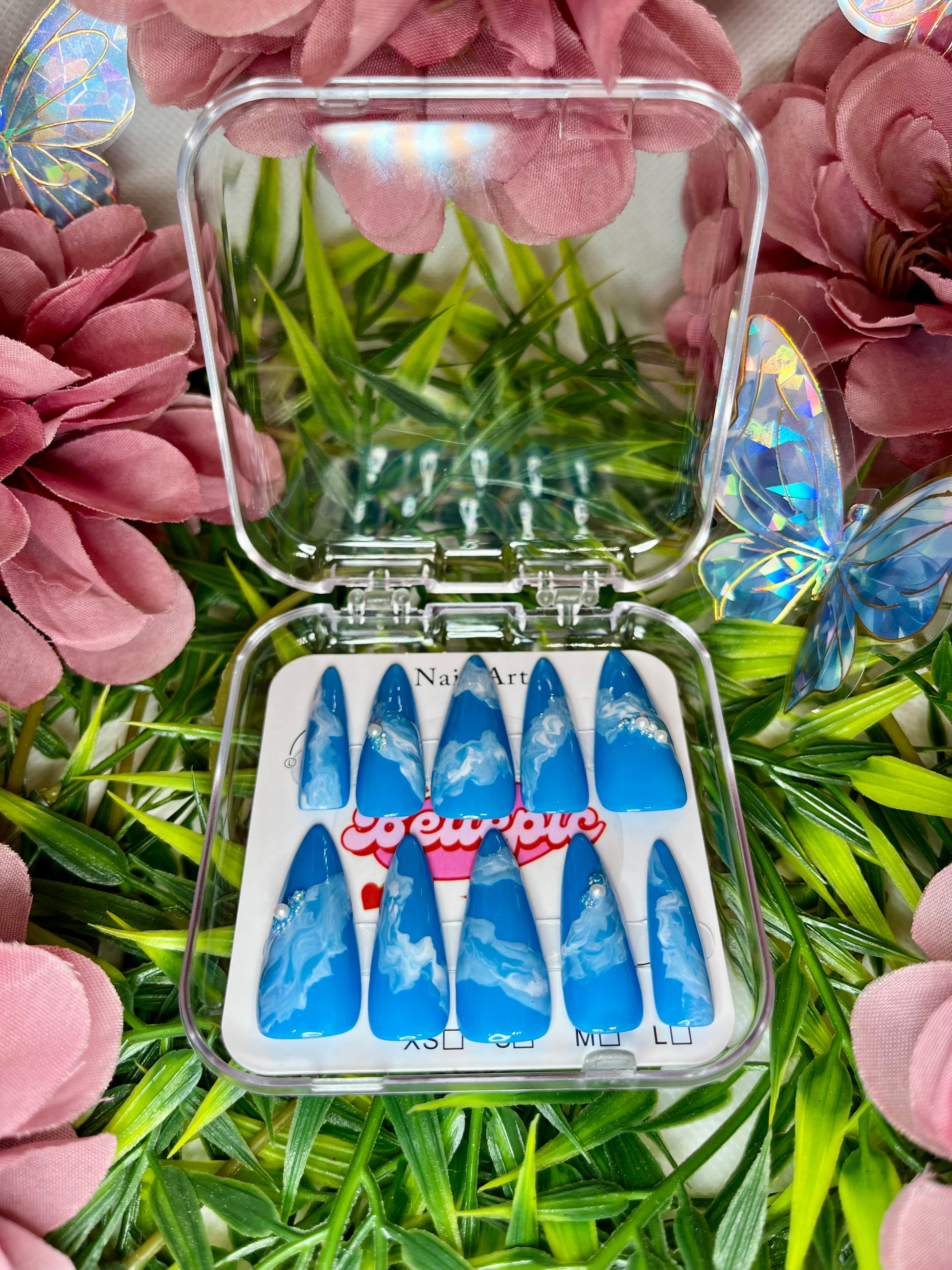Complete set includes: Handmade nails + Adhesive tabs + Nail file + Nail glue + Storage box