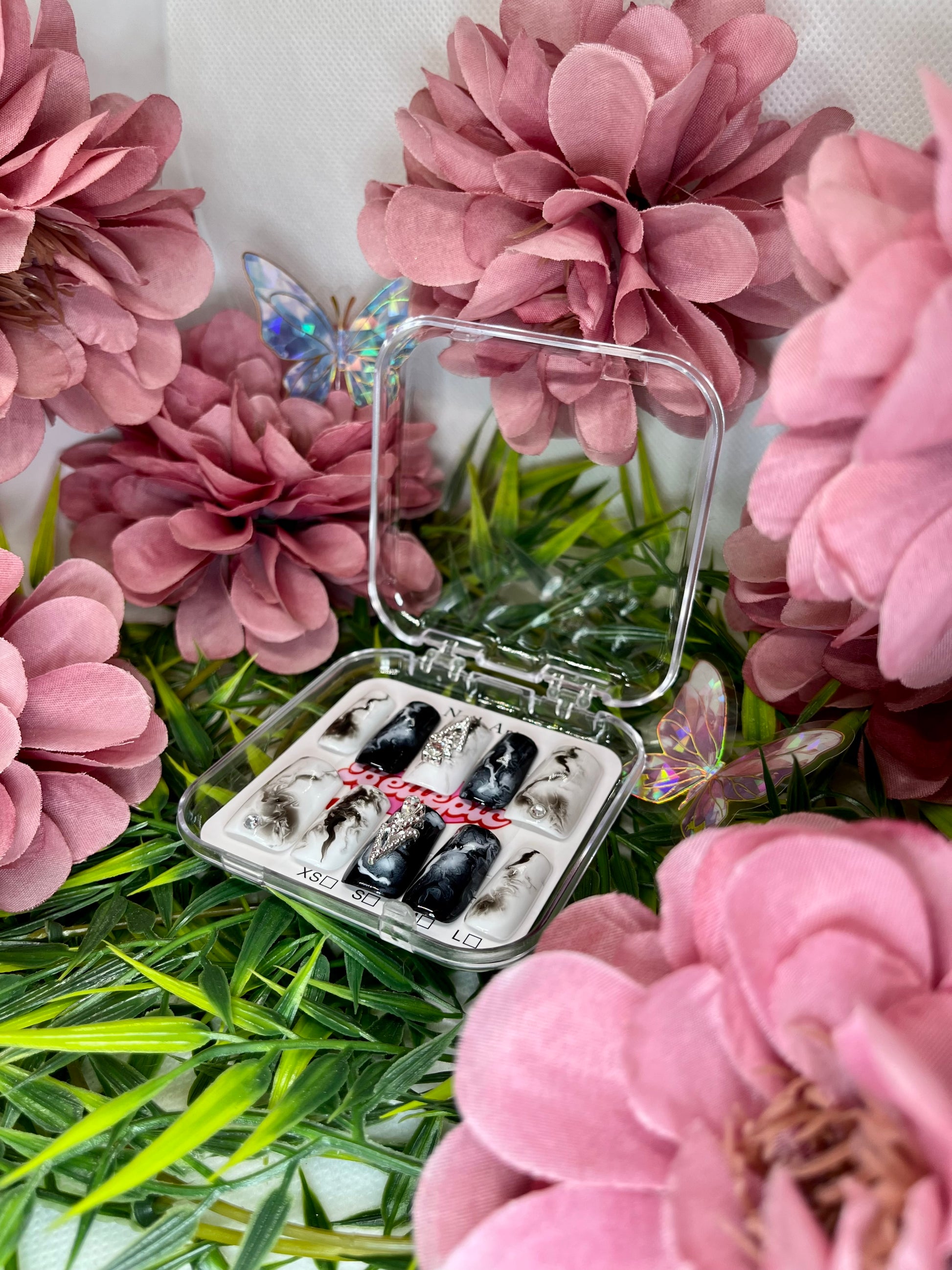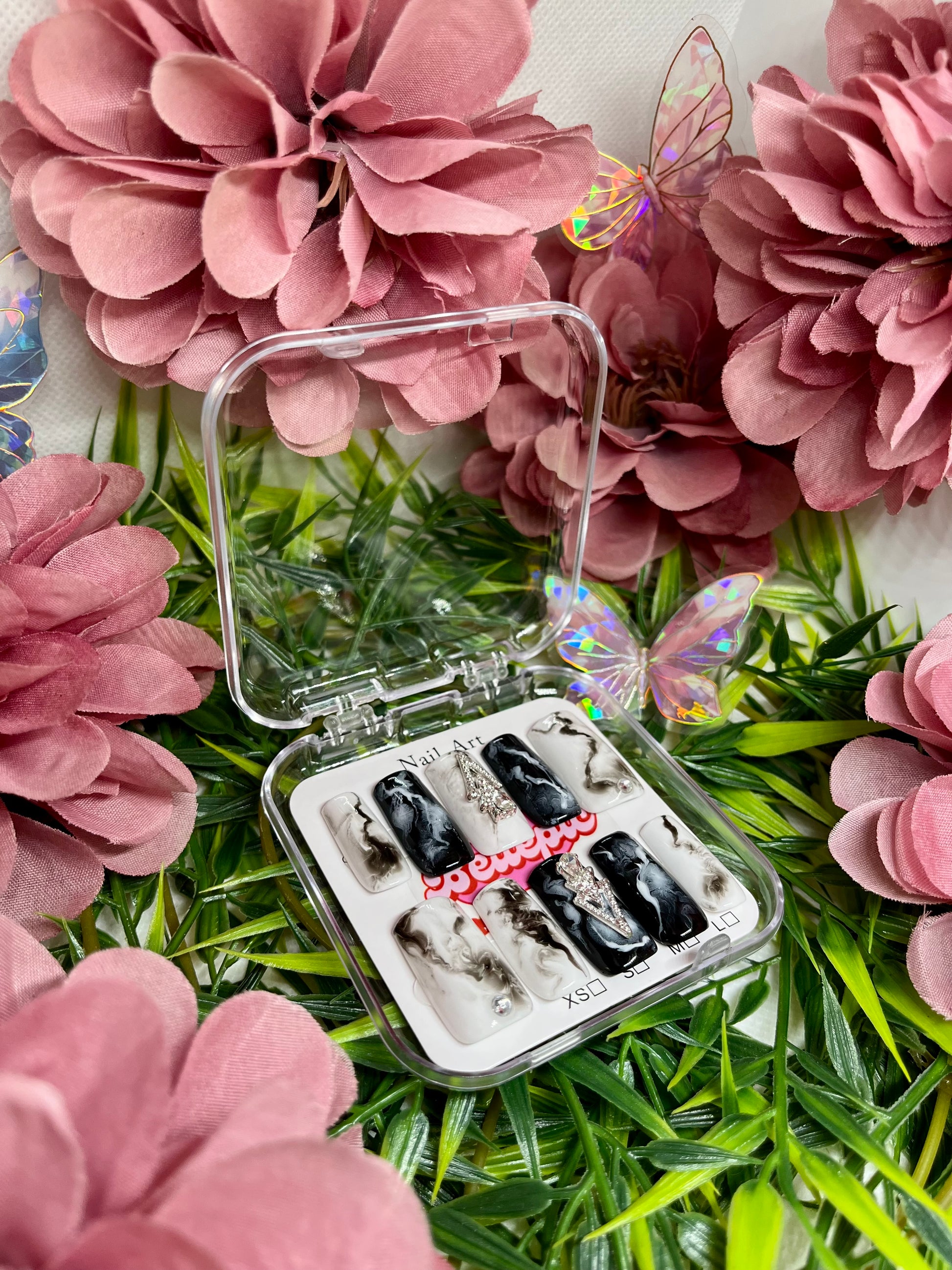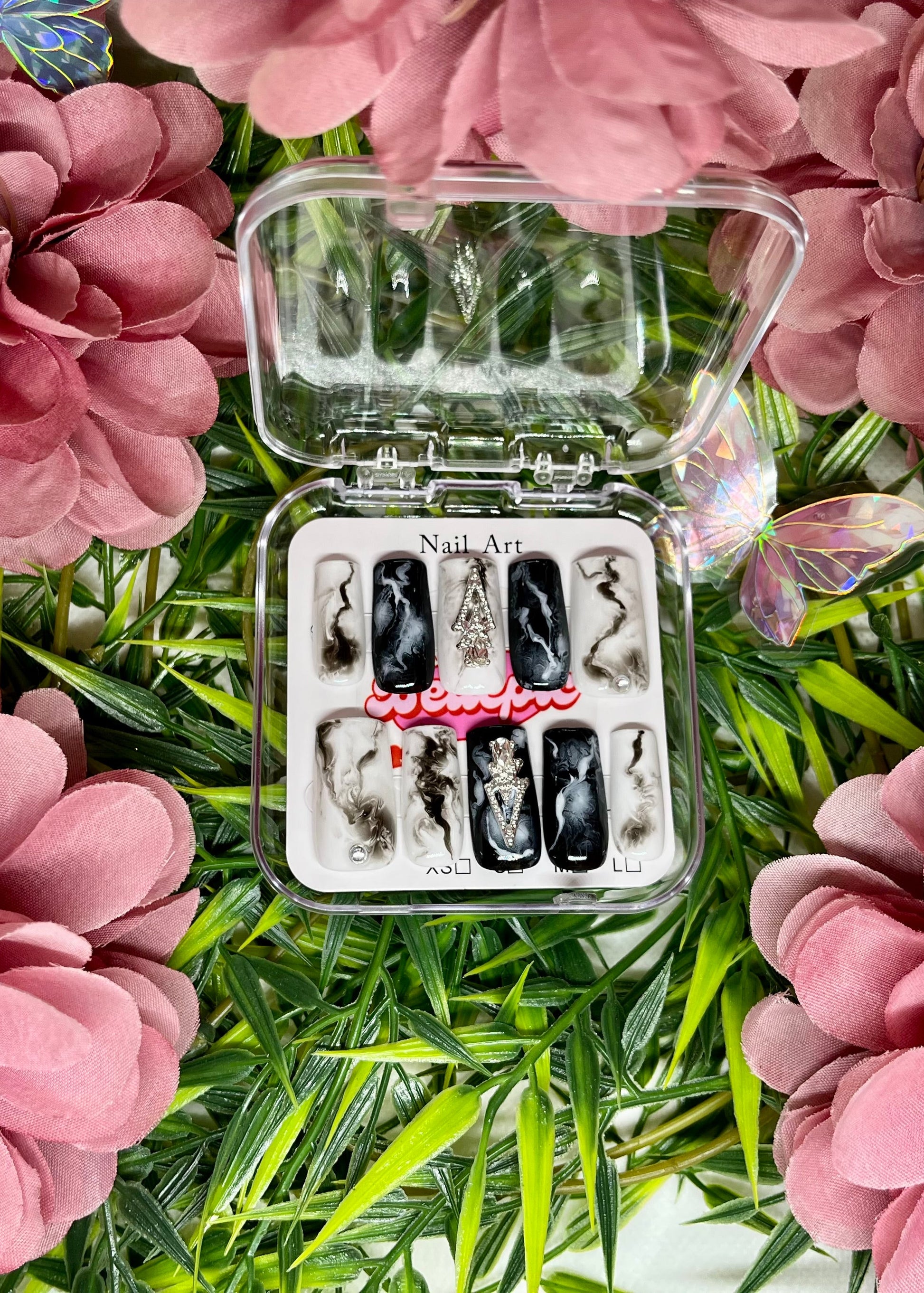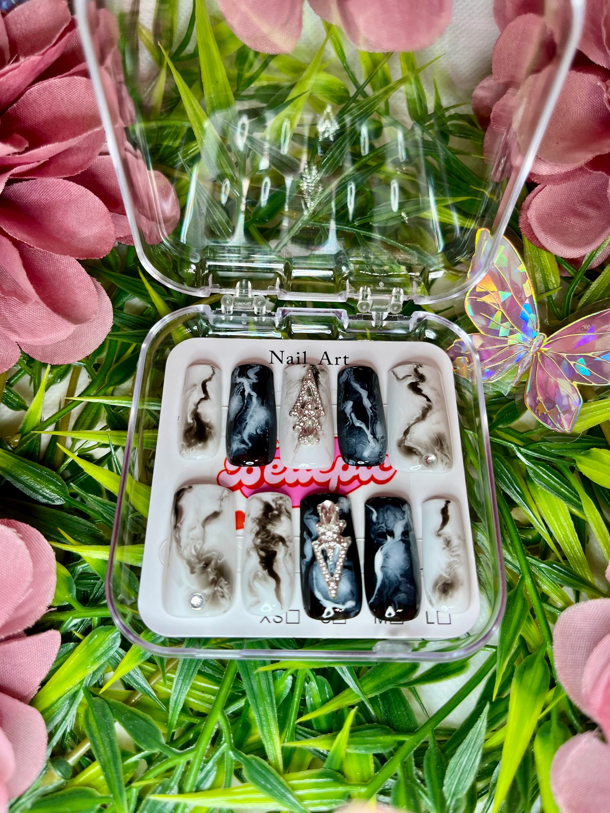 Complete set includes: Handmade nails + Adhesive tabs + Nail file + Nail glue + Storage box