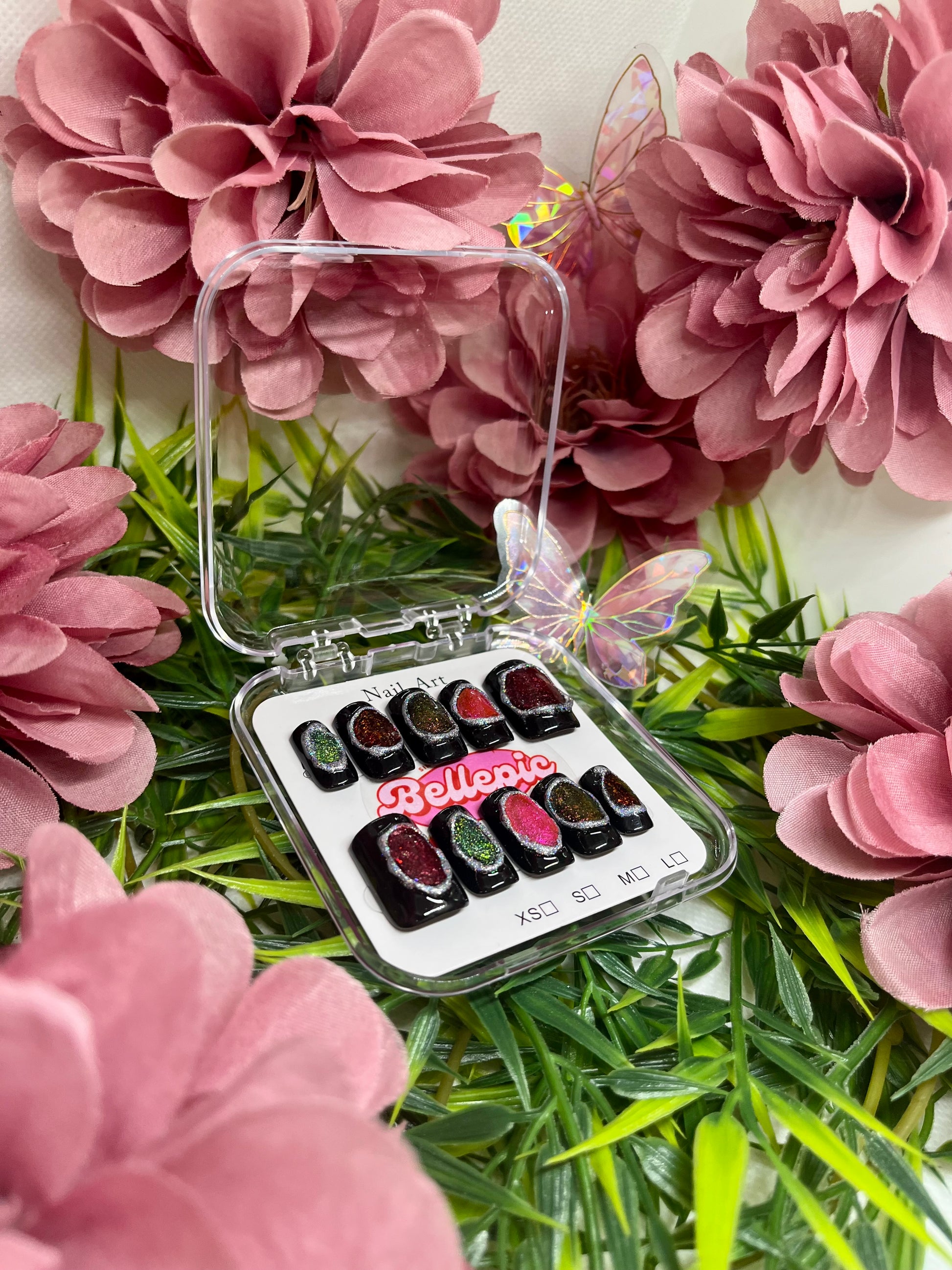 Complete set includes: Handmade nails + Adhesive tabs + Nail file + Nail glue + Storage box